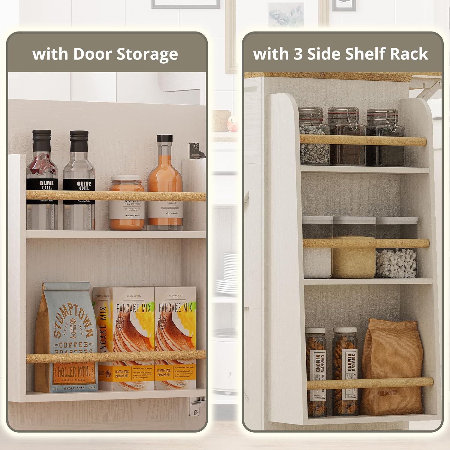 The built-in spice and towel rack adds another layer of convenience, ensuring that your cooking essentials are always within reach. Whether you’re a culinary enthusiast or a busy home cook, the IRONCK Rolling Kitchen Island Table is the perfect addition to your kitchen.