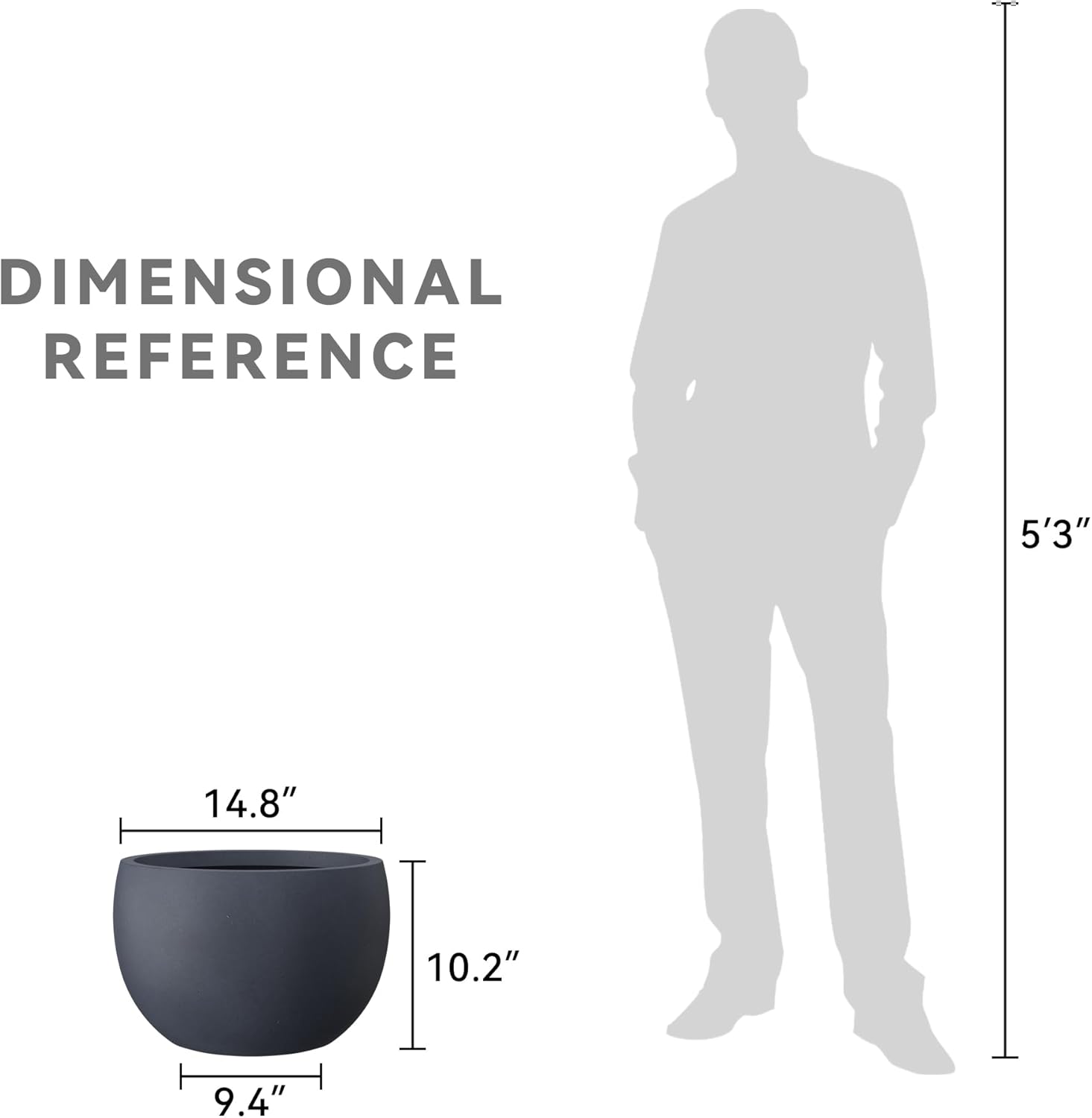Kante 15.7″ Dia Round Concrete Planter, Outdoor/Indoor Large Bowl Plant Pots with Drainage Hole and Rubber Plug for Garden Patio Balcony Home, Charcoal