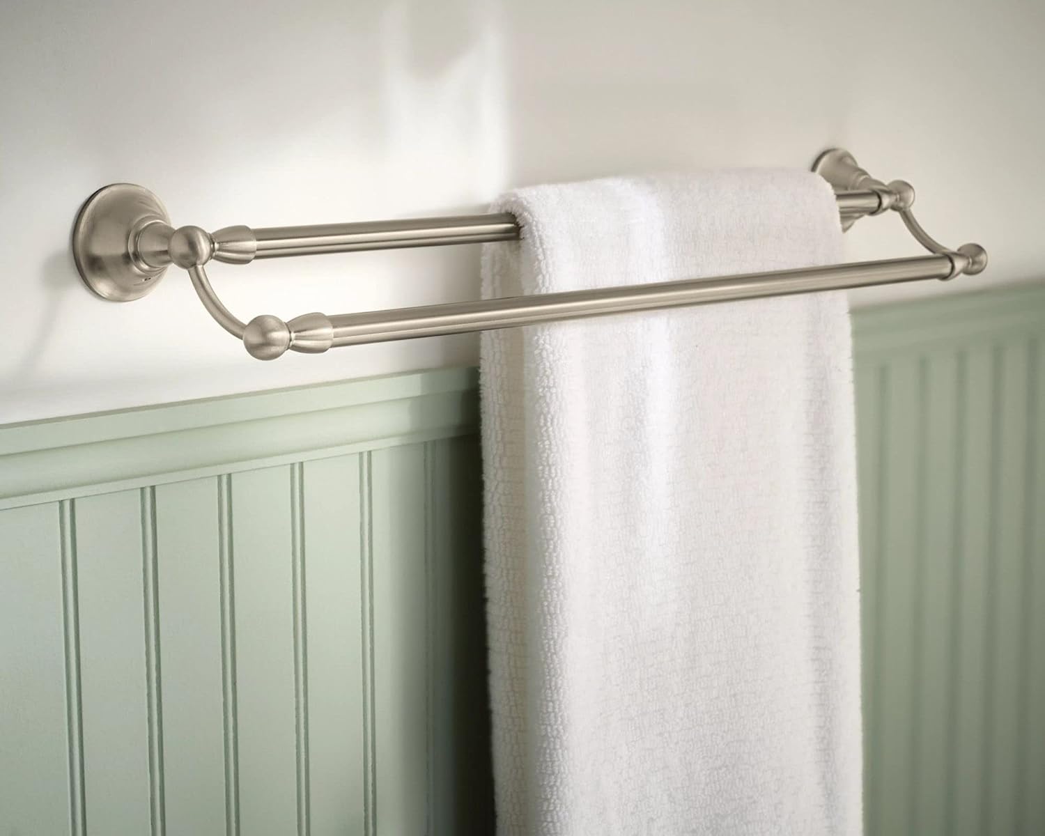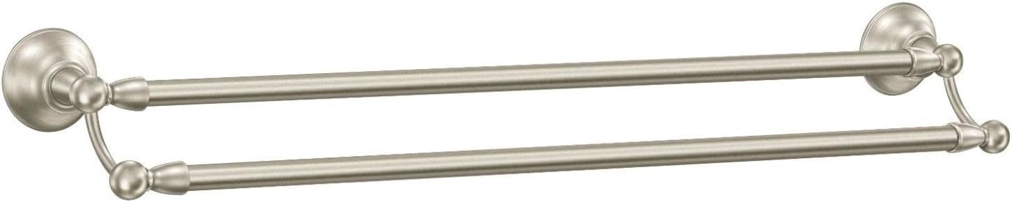Moen Sage Collection Spot Resist Brushed Nickel 24-Inch Double-Towel Bar, Wall Mounted Bath Towel Hanger with Two Rods, DN6822BN