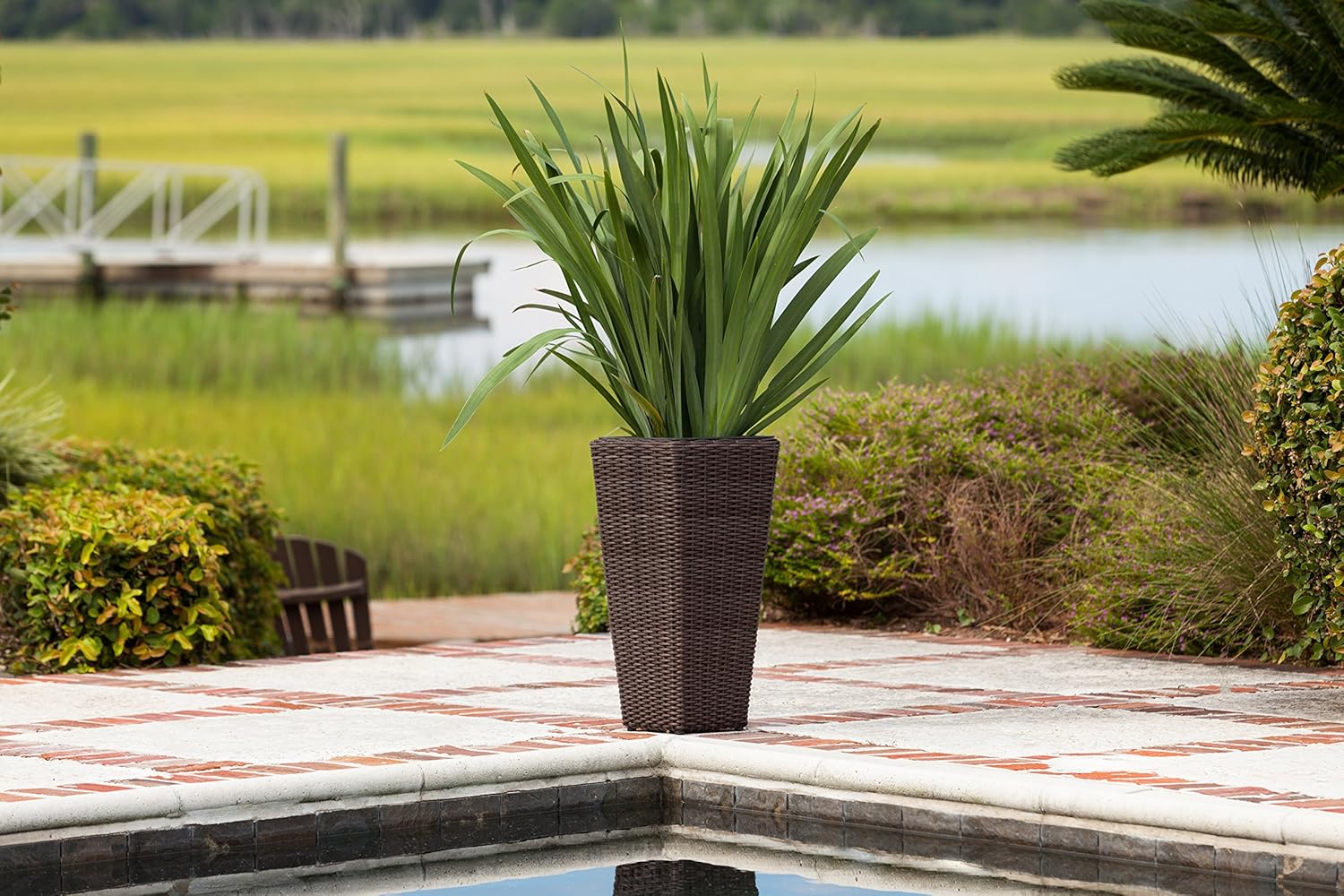 Patio Sense 62501 Alto Wicker All-Weather Planter Set with Liners Tall Plant Decor Box for Outdoors Patio Herb Garden Furnishings – Mocha – Pack of 2